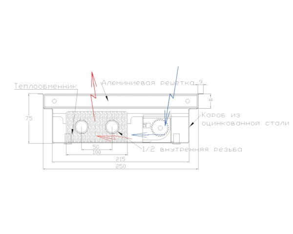 Конвекторы для отопления дома серии ITTBZ – это компактные модели с небольшими габаритными размерами, предназначенные для монтажа в неглубокие полы и работающие по принципу принудительной конвекции. Короба этих приборов изготавливаются из прочной оцинкованной стали, но не имеют полимерного покрытия, что значительно сказывается на их итоговой стоимости. Эффективность, надежность и долговечность таких конвекторов при этом остается на самом высоком уровне, поскольку такой выбор материала короба никак не влияет на высокое качество сборки прибора.Конвекторы внутрипольные ITTBZ – проверенное качество по доступной цене. Отопление дома конвекторами с принудительной конвекцией Модели серии ITTBZ отличаются от водяных конвекторов отопления ITTZ наличием электрического вентилятора, значительно увеличивающего тепловую мощность. Благодаря ему нагрев воздуха в помещениях становится более динамичным, а работа прибора – более производительной. Кроме того, функционирование за счет принудительной конвекции обеспечивает равномерное отопление всей площади помещения, что особенно актуально для современных офисов и квартир. Срок гарантии составляет 10 лет на теплообменник и 2 года на короб.